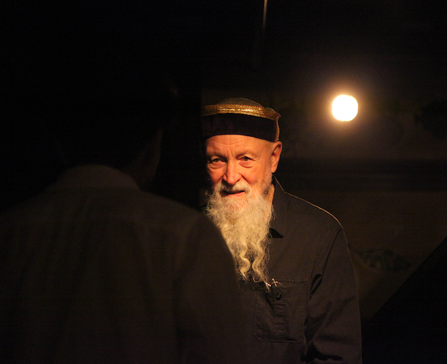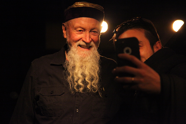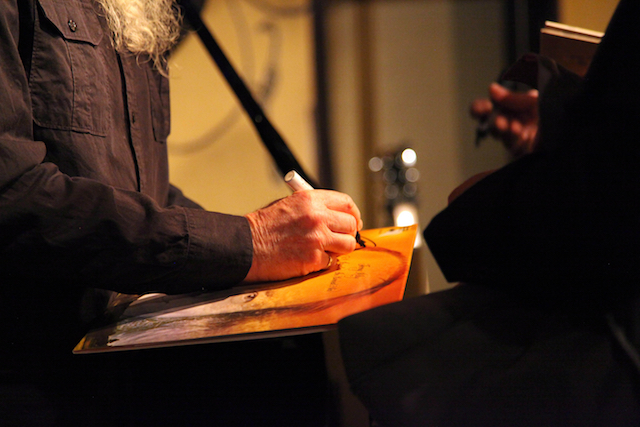 Terry Riley - signing the classic Rainbow In Curved Air LP